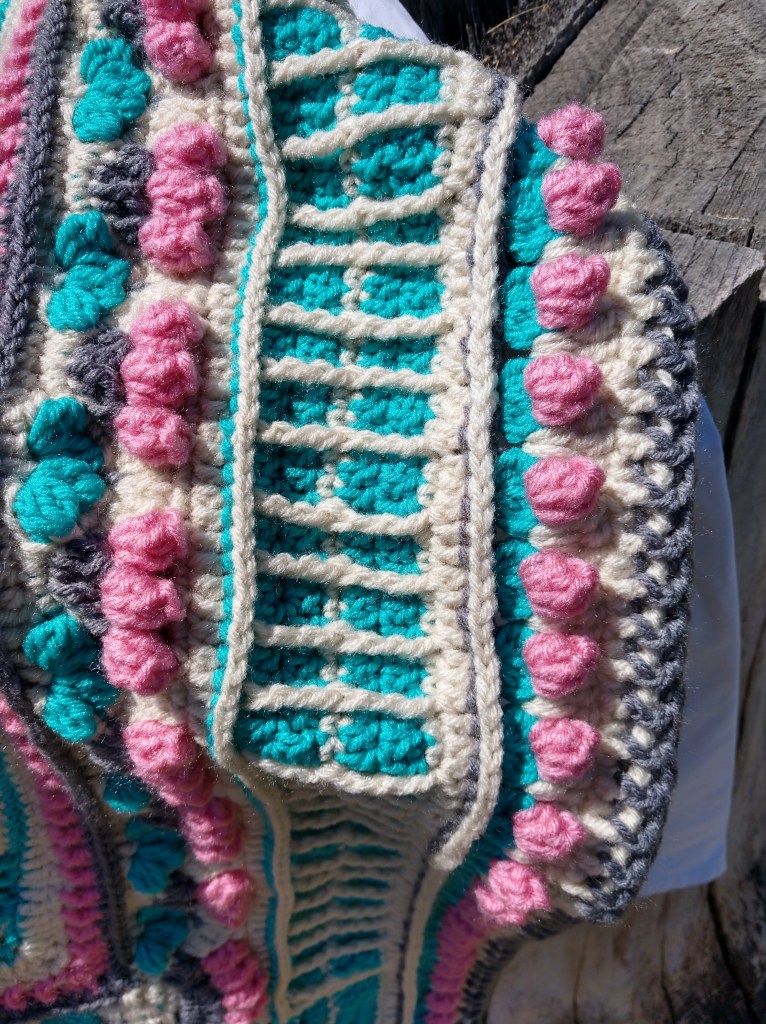 But I feel more like mine would be a cute blanket you’d see on the back of an alpaca somewhere. I think it may be necessary to make a little amigurumi llama with a cutsie little matchy-matchy blanket to accompany this afghan!